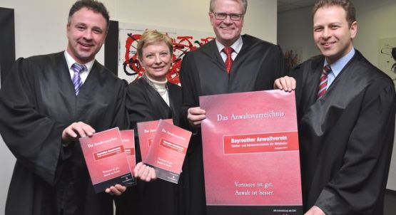 Der Bayreuther Anwaltverein e. V. gibt erstmals ein eigenes Branchenverzeichnis heraus, welches in zahlreiche Haushalte in Bayreuth und der Region verteilt und in vielen Ämtern und Behörden ausgelegt wurde. Der Anwaltverein, dem viele Rechtsanwältinnen und Rechtsanwälte aus dem Landgerichtsbezirk Bayreuth angehören, möchte mit diesem Verzeichnis in kompakter und übersichtlicher Form die Suche nach dem richtigen Anwalt erleichtern.